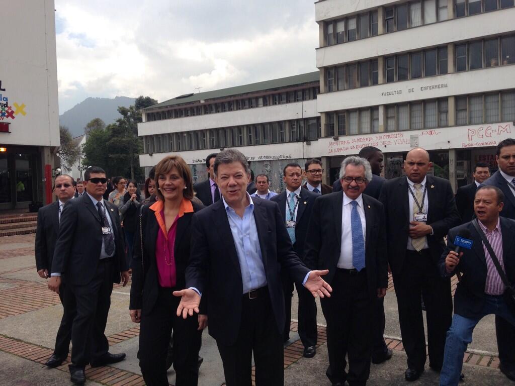 Desde las 11pm de ayer la universidad se encuentra militarizada, rodeada de policía y policía militar con el fin de prestar al seguridad a lo que va a ser algo sin precedentes en la universidad… la entrada del presidente de la Republica Juan Manuel Santos.